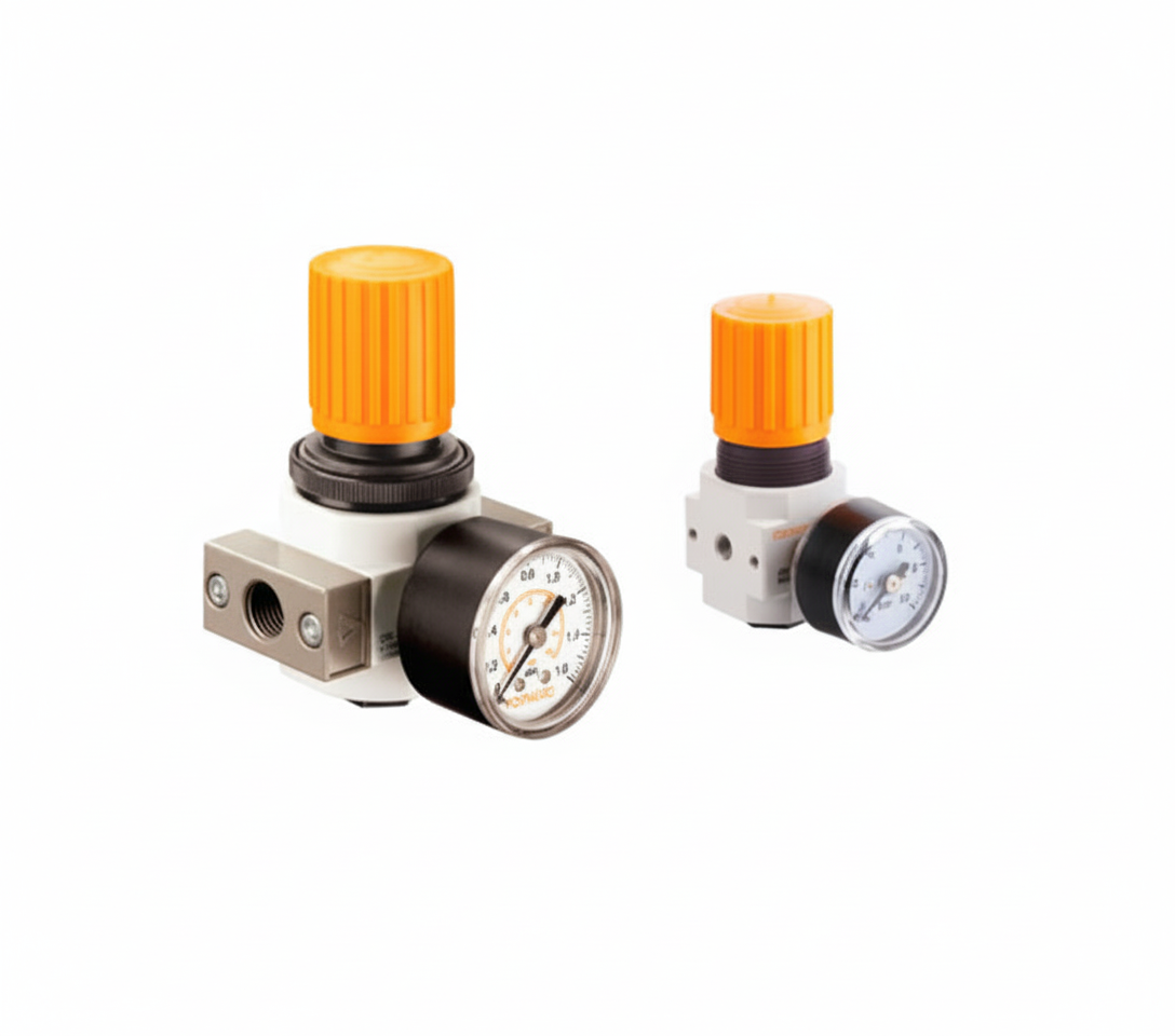 Los reguladores de presión se utilizan en aplicaciones neumáticas para ajustar y mantener constante el nivel de presión de una máquina.